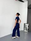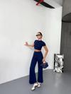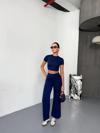 Arona MDB Osy odal Yumuşak Dokulu Kumaş Kısa Kollu Crop Alt Ispanyol Paça Pantalon Ikili Takım acivert