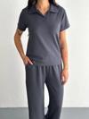 Osy Modal Yumuşak Dokulu Kumaş Kısa Kollu Yakalı T-shirt Pantalon Ikili Takım- Antrasit
