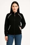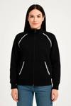 Oversize Dik Yaka Fermuarlı Sweatshirt - Zincir Nakışli Kanguru Cepli, - Siyah
