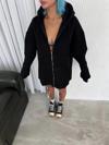 Oversize Tam Fermuarlı Uzun Kol Hırka - Siyah