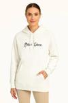 MDB Shop MDB Oversize Üç İplik Şardonlu Kapüşonlu weatshirt – Beyaz “Other ives” Ön Ve Arka Baskılı, Kanguru