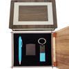 Özel Ahşap Kutulu Mavi Kalem Anahtarlık Ve Çakmak Set