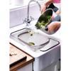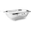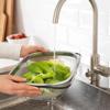 Paslanmaz çelik teleskopik süzgeç, meyve, sebze, makarna gibi yiyecekleri yıkamak veya süzmek için kullanılır. Dayanıklı paslanmaz çelik yapısı uzun ömürlüdür ve etkili süzme sağlar. İnce delikli tel örgü yapısı sayesinde küçük parçaların kaçmasını önler. Teleskopik açılıp kapanabilir yan kolları, süzgecin lavabo üzerine kolayca yerleştirilmesini sağlar ve farklı lavabo genişliklerine uyum gösterir. Süzgeç, katlanabilir ayakları sayesinde yerden yükseltilerek daha hijyenik kullanım sunar. Hem ev tipi mutfaklar hem de profesyonel mutfaklar için uygundur.