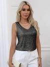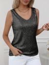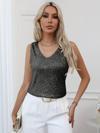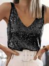 Pul Payetli Sıfır Kol Bluz -Siyah