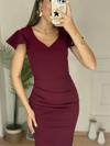QKadın Kısa Kollu Kalp Yaka Yanlardan Büzgü Detay Midi Janjan Krep Elbise
