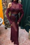 Saten Kuşaklı Ajurlu Triko Elbise 2847