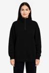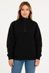 Üç İplik Dık Yaka Yarım Fermuarlı SweatShirt - Siyah