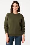 Üç İplik Düz Bisiklet Yaka SweatShirt - Haki