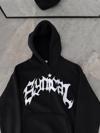 Üç İplik Kapşonlu Baskılı Oversize SweatShirt- Siyah