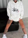 Üç İplik Kapşonlu Baskılı SweatShirt - Beyaz