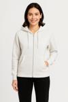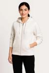 Üç İplik Kapüşonlu Tam Fermuarlı Kanguru Çepli SweatShirt Hoodie - Beyaz