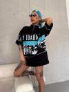 Unisex Baskılı Yarım Fermuarlı T-Shirt - Siyah