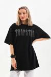 Unisex Taş Desenli Oversize T-Shirt - Siyah