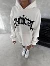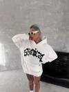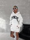 Unisex Üç İplik Kapşonlu Baskılı SweatShirt - Beyaz