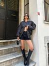 Markapia Woman Süet Siyah Kruvaze Crop Ceket