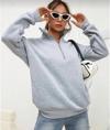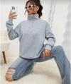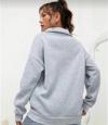 Unisex Uzun Kol Yarım Farmuarlı Yakalı Basic SweatShirt - Gri