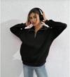Unisex Uzun Kol Yarım Farmuarlı Yakalı Basic SweatShirt - Siyah