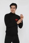 Unisex Yarım Boğazlı Baskılı Dokuma Triko - Siyah