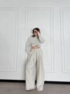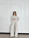 Uzun Kollu Önü İp Büzgülü Crop Ve Pantolon İkili Takım - Gri