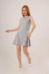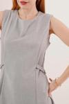 Yanları Zincir Detaylı Sıfır Kol Gri Mini Elbise
