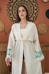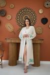 Yeşil Baskı Detay Keten Hırka