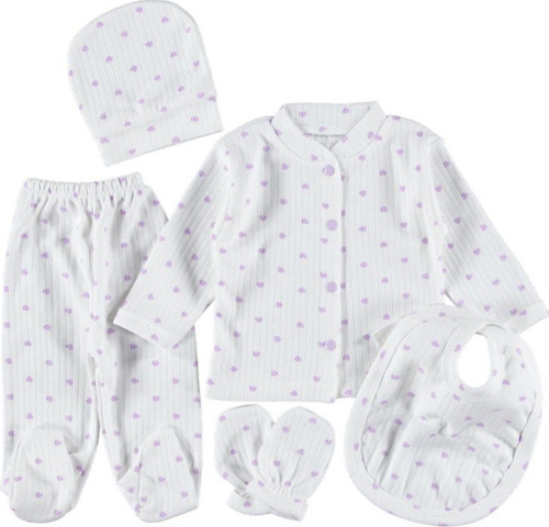 Mor renk seçeneği ile sunulan bu set, bebeğinizin şıklığını tamamlar.