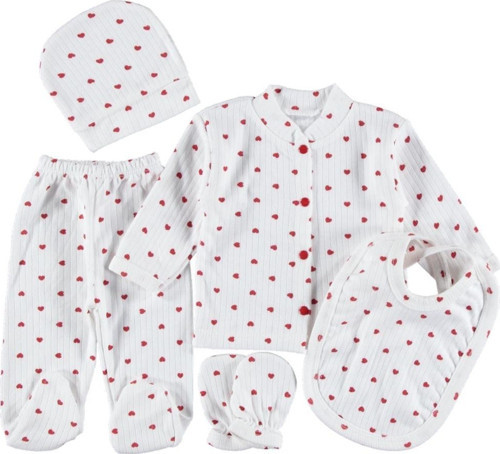 Mdrandy 0-3 Aylık 5 Li Zıbın Seti Hastane Çıkış Seti %100 Pamuklu (Kutusuz)