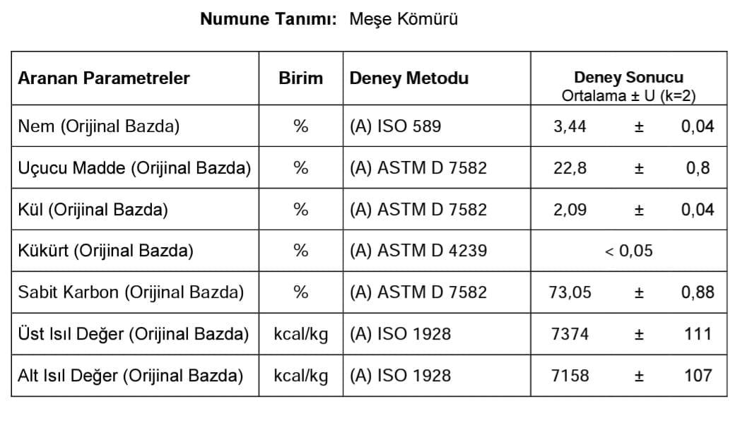 Bio Karbon Meşe Kömürü Tubitak Analiz Sonuçları