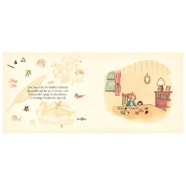 Dünyada çığır açan, yaşayan en önemli bilim insanlarından biri olmasının yanı sıra, bir ilham kaynağı olarak da ışıldayan Dr. Jane Goodall'ı tanımaya çocukluğundan başlamak gerek. Ben... Jane, onun henüz küçücük bir çocukken kurduğu hayallere ve bu hayalleri gerçekleştirmek için nasıl azim ve heyecanla çalıştığına dair, büyüleyici bir öykü. Goodall'ın herkese ama en çok da çocuklara ilham vermesini diliyor, ödüllü yazar ve çizer Patrick McDonnell imzalı bu resimli kitabın Türkçe çevirisini okurlarımızla buluşturmaktan mutluluk duyuyoruz.