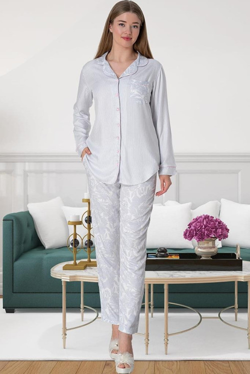 Ev Giyimde kategorisinde rahatlığı şıklıkla sunan model gömlek yaka ve boydan düğmelidir, rahat kalıptır. Model cep detaylıdır. Pamuk dokuma kumaştan üretilmiş olup hafif esnektir.