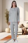 Mecit 6021 Bayan Gri Büyük Beden Uzun Kollu Pijama Takımı