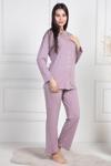 Aradığınız konfor ve şıklığı bir arada sunan Mecit 6105 Gül Kurusu Kadın Büyük Beden Boydan Düğmeli Pijama Takımı, yumuşak melisa kumaş yapısıyla sizlere rahatlık sunar. %75 pamuk ve %25 viskon karışımdan üretilen bu pijama takımı, nefes alabilen ve hafif yapısıyla konforlu kullanım sağlar.