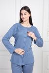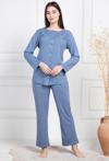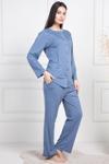 Aradığınız konfor ve şıklığı bir arada sunan Mecit 6105 İndigo Kadın Büyük Beden Boydan Düğmeli Pijama Takımı, yumuşak melisa kumaş yapısıyla sizlere rahatlık sunar. %75 pamuk ve %25 viskon karışımdan üretilen bu pijama takımı, nefes alabilen ve hafif yapısıyla konforlu kullanım sağlar.