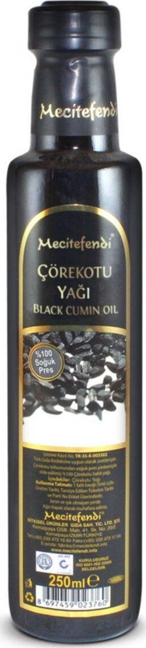 Mecitefendi soğuk press çörek otu yağı 250 ml. - içerdiği güçlü vitamin, mineral ve aktif maddelerle modern tıp ve kozmetik dünyasının her daim ilgisini çeken çörek otunun, beyin tümörünü engelleyici maddeler içerdiği bilimsel olarak kanıtlanmıştır. - kan şekerini düşürür ve dengeler. Dolayısıyla ve türevlerini de önler. - düşmanı niteliğindeki çörek otu