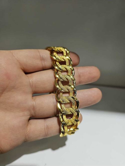 22 ayar altın kaplama ile zenginleştirilmiş, şık ve modern bir görünüm sunar; A+ kalite malzemesi sayesinde uzun ömürlü kullanım vaat eder; Gençlerin tarzını yansıtan tasarımıyla dikkat çeker ve günlük kombinlerinize kolayca uyum sağlar; 2 cm genişliğindeki zarif yapısı, bileğinizde rahat bir kullanım sunarken şıklığınızdan ödün vermez;