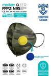 medizer, n95 maske, ffp2 maske, renkli maske, yeşil kamuflaj desenli maske, yeşil kamuflaj desenli ffp2 maske, ffp maske, yeşil n95 maske, solunum koruyucu maske, toz maskesi, ventilli maske, desenli maske, desenli n95 maske