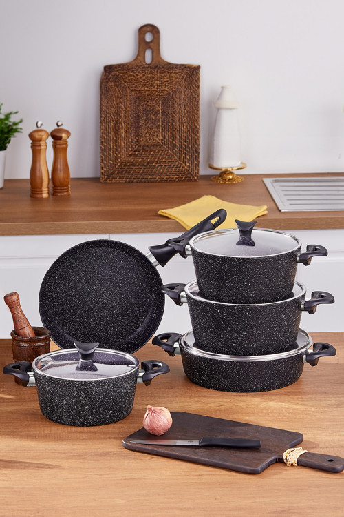 İster misafirlerinize, isterseniz çekirdek ailenize harika yemekler pişireceğiniz Taç Mega 9 Parça Tencere Seti Siyah ile unutmayacak sofralar hazırlayın.