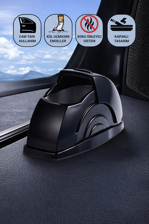Kapaklı ve açılır kapanır tasarımı sayesinde kötü koku yayılımını azaltmaya yardımcı olur. Kullanım sonrası kapağın kapatılması ile kül ve izmarit görünümü gizlenir, araç içi daha düzenli ve temiz bir görünüm kazanır. Kompakt yapısı sayesinde sürüş sırasında görüş alanını engellemez.