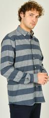 Erkek Slim Fit Blok Desenli Pamuklu Uzun Kol Gömlek 1300 İndigo Gri