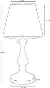 ÜRÜN ÖLÇÜLERİ Ürün Ayak Çapı: 15.5 CM Ürün Yüksekliği: 51 CM Ürün Başlık Çapı: 25 CM Ürün Başlık Yüksekliği: 20 CM ÜRÜN ÖZELLİKLERİ Metal Gövde Statik Fırın Boyalı Başlık Kısmı Kumaştır Leke Tutmaz Ürün Ara Fuar Kablosu TSE Onaylı AÇ-KAPA Şeklindedir Duy Tipi: E 27 Led Ampül Önerilmektedir