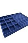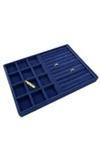 Megass Dekor Berlin Model Süet Kumaş Lacivert Renk Sosisli-Bölmeli Çekmece Içi Takı Sergileme Standı
