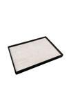 Malzemesi mdf üzerine süet kaplama ·Boyutları : Boy: 34 cm En: 24 cm Yükseklik : 2 cm · Renk: Gri-füme · Kullanım Şekli : Takı sergileme ve fotoğraf çekim tablası