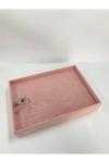 Megass Dekor Yerli Üretim Süet Kumaş Pembe Renk 34/24 Cm Batırmalı Çekmeçe Içi Bileklik Kelepçe Tablası