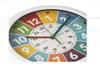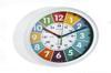 Çocuklar İçin Beyaz İngilizce Eğitici Duvar Saati Ø20cm Çocuklariçin beyaz çerçeveli ve renkli göstergeli, kağıt ambalajlı eğitici duvar saati.; Çocuğun saati İngilizce öğrenmesi için göstergeler (tam olarak - çeyrek -çeyrek olmadan yarım -), her beş dakikada bir farklı renkler ve 12 ve 24saatlik zaman göstergesi mevcuttur.; 1 adet AA pil ile çalışır (pil dahil değildir).; Kullanım kılavuzu dahildir.; PaketBoyutu : 20,5x20,5x4 cm Çap xYükseklik : 20x3,5cm