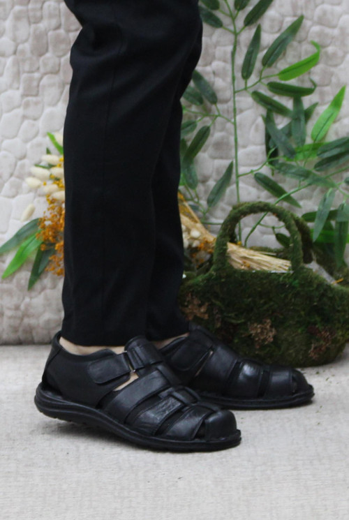 Mehmet Mete 102 Siyah Kale Comfort Hakiki Deri Erkek Sandalet