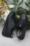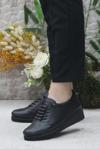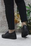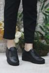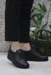 Mehmet Mete 4299 Siyah Hakiki Deri Lastik Bağçıklı Yumuşak Kadın Ayakkabı