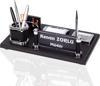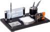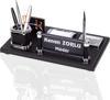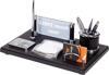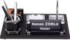 Deri masa üstü isimlik setimiz malzemesi, rengi, işçiliği , aksesuarlarıyla masanıza eşsiz bir şıklık katmak için tasarlanmıştır. Özel İşçiliğe sahip dikişli deri, gümüş renk kartvizitlik , notluk, gümüş renk tükenmez kalem, ataçlık ve kalemlik ile göz dolduran bir isimlik setidir. Ürün içerisinde not kağıdı hediyemiz olarak gönderilmektedir.