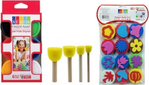 Mekafix Parmak Boyası Ponpon Sünger Fırça Sünger Eva Baskı Seti