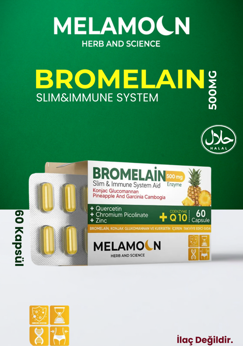 Bromelain 500 Mg Ve Konjak Glukomannan Koenzim Q10(BROMELİN)-krom Pikolinat 60 Kapsül