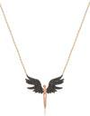 Melek Kolye. Rose Altın Kaplama Siyah Nano Zirkon Taşlı 925 Ayar Gümüş. Maden : 925 Ayar gümüş. Kaplama : Rose altın kaplama. Renk : Rose altın. Taş : Nano Zirkon Siyah Zincir uzunluğu : 45 cm. Ürün ağırlığı : 3.10 Gr (+-). Teslimat: Ürün ahşap hediye kutusunda gönderilecektir.